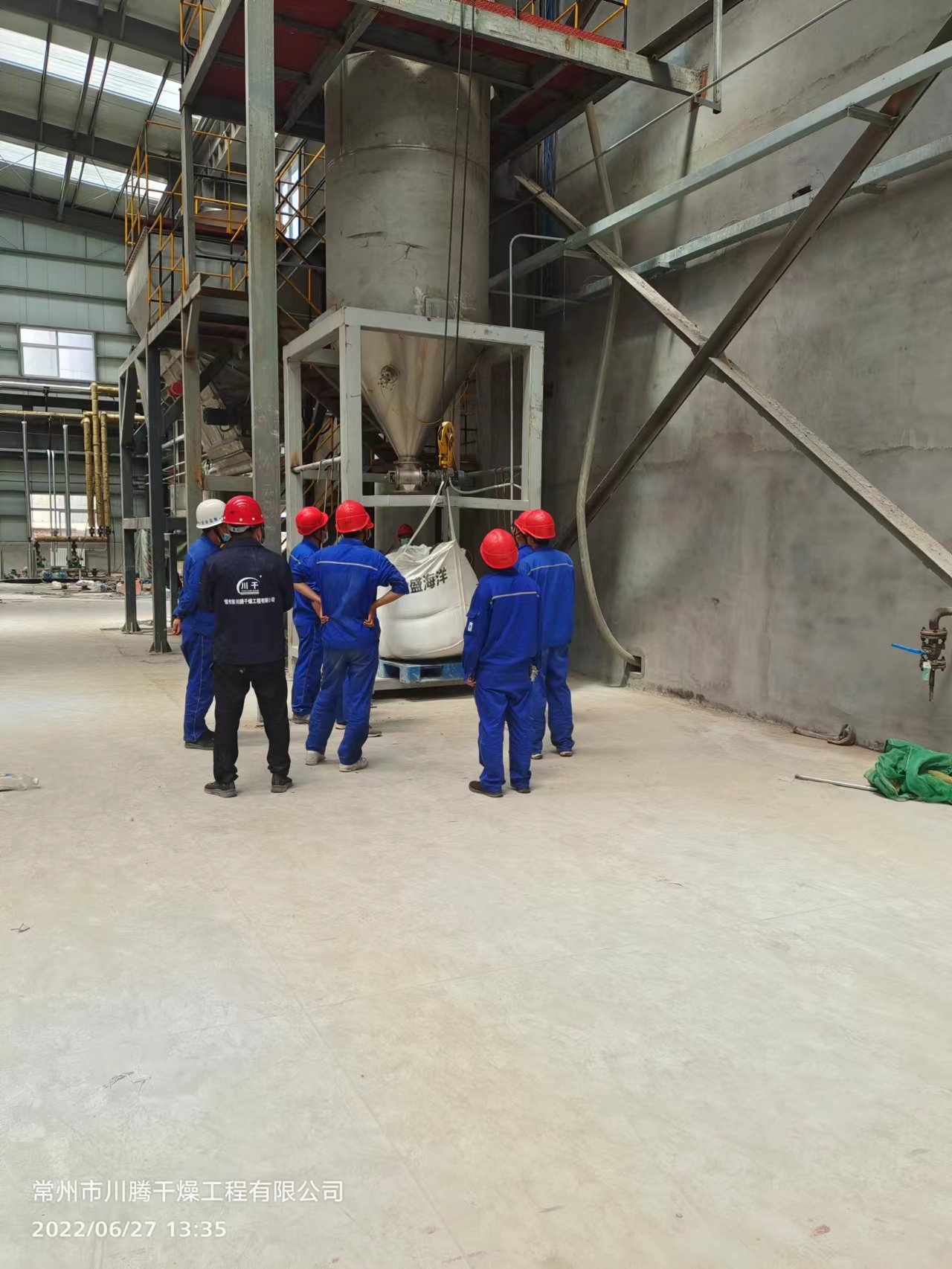 干燥好后的物料,通过周转料仓用真空上料机输送进料仓,进行吨袋包装。
