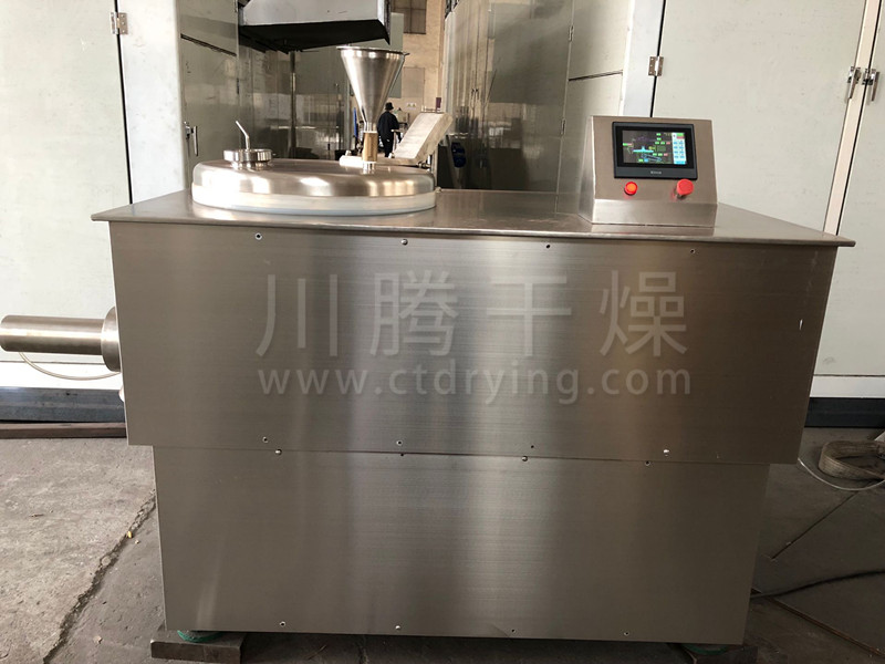 粉体物料与粘合剂在圆筒形容器中由底部混合浆充分混合成湿润软材,然后由侧置的高速粉碎桨切割成均匀的湿颗粒。